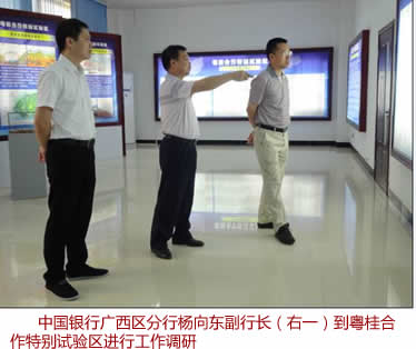 2013年8月27日,广西银监局取梧州市签定《广西银行业支撑粤桂合做出格试验区金融办事立异成长计谋合做和谈》。 工商银行梧州分行按照和谈“推进金融办事的立异、轨制立异、产物立异、办事体例立异,为粤桂合做出格试验区供给更丰硕、更高效的金融办事”的指点,加大对梧州市和粤桂合做出格试验区先辈制制业、计谋性新兴财产、现代农业、现代办事业及中小微企业的金融办事立异,不竭提高信贷资金的利用质量和效率。除了为粤桂合做出格试验区企业供给信贷支撑以外,还为企业供给了融资参谋、