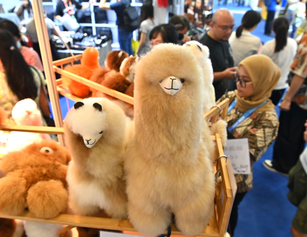 2024年9月28日,不雅众正在中国东盟博览会上挑选秘鲁羊驼毛公仔。(记者 周华 摄)■对欧盟、美国等保守市场也连结增势。也是我国机电产物第一大出口市场。两边经贸联系亲近,不竭拉紧了中欧好处配合体的纽带,2024年双边商业增加1。6%,此中对法国、西班牙、匈牙利别离增加2%、4。5%、12。9%。同期,中美商业增加4。9%,取我国商业全体增速根基持平,我们从美国进口农产物、能源产物、药品、飞机,对美国出口服拆、消费电子、家用电器等,实现了互利共赢。